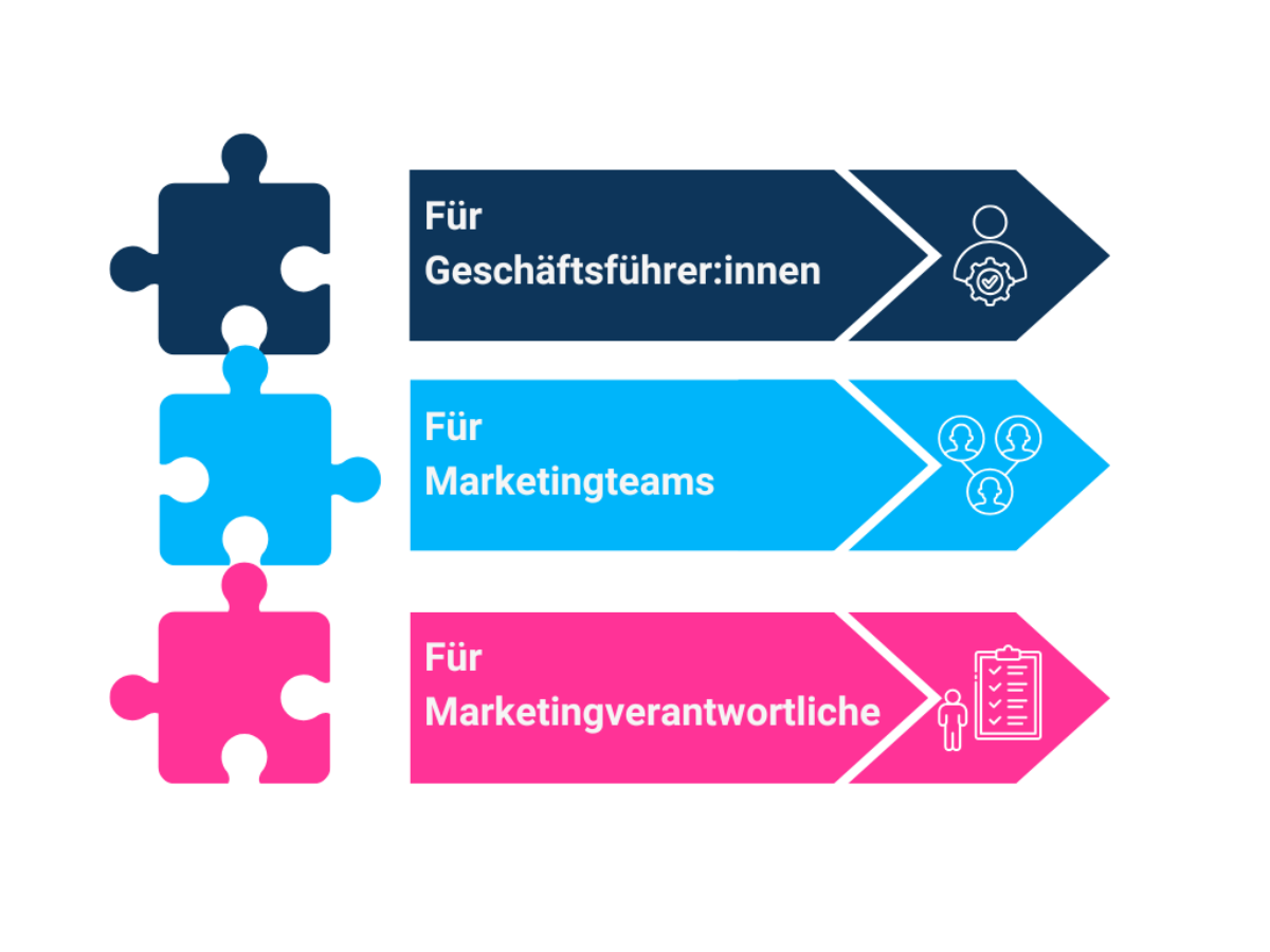 Marketing Solutions richtet sich an Geschäftsführerinnen und Geschäftsführer, Marketingteams und Kommunikationsverantwortlichen, die Verantwortung übernehmen wollen. Wir unterstützen dort, wo Entscheidungen vorbereitet, Prioritäten gesetzt und Projekte vorangebracht werden müssen: als Sparringpartner auf Augenhöhe. Mit klarem Blick von aussen, strukturiertem Vorgehen und dem Anspruch, Marketing nicht nur zu planen, sondern wirksam umzusetzen.